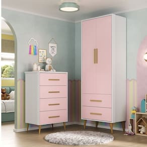 1x Guarda-roupa Infantil Encanto Branco/Rosa Largura: 70,8 cm Altura: 195 cm Peso: 58,9 kg Profundidade: 40 cm Necessita Montagem: Sim