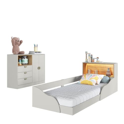 Transforme o ambiente infantil com o Quarto Completo Lille Branco da Art In Móveis, composto por cômoda e cama montessoriana. Desenvolvido para unir funcionalidade, segurança e design moderno, esse conjunto é ideal para quem busca um espaço organizado, acolhedor e adaptado ao desenvolvimento da criança. Produzido em MDP 15mm com acabamento fosco, o kit proporciona resistência, praticidade na limpeza e um toque elegante ao quarto.