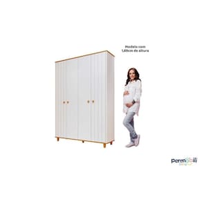 - Guarda Roupa Infantil c/ 4 Portas (2 Ripadas) Cupcake Off White/Nature - Permóbili Baby - 1 unidades