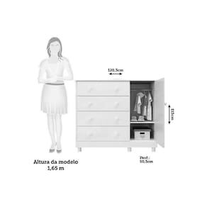 - Cômoda Infantil Elô c/ 1 Porta e 4 Gavetas Branco/Amendoa - Peroba - 1 unidades