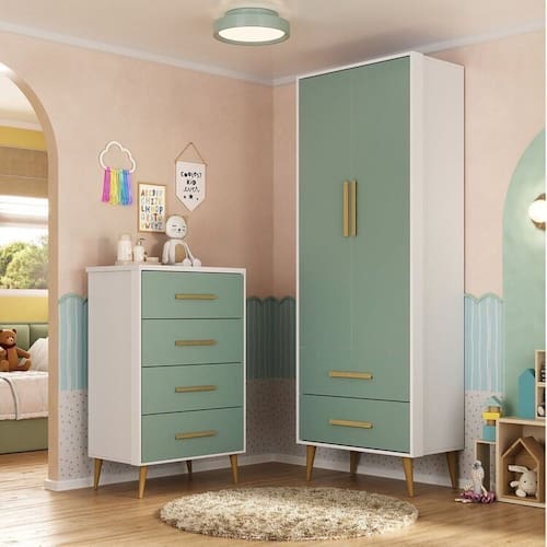 1x Cômoda para Quarto Infantil Magia Branco/Verde Largura: 70,8 cm Altura: 110,2 cm Peso: 29,9 kg Profundidade: 40 cm Necessita Montagem: Sim