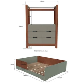 Com design inspirado em móveis planejados e acabamento sofisticado, o conjunto Olivia e Mark transforma o quarto infantil em um espaço seguro, versátil e cheio de estilo. Altura do Conjunto: 165 cm Ambiente Principal: Quarto Infantil codigo_ean: 7900288264466 Complexidade da Montagem: Média: pode ser montado por mais de uma pessoa e/ou necessite de maior conhecimento para montagem Cor: Verti/ Castanho Cor do Produto: Verti/ Castanho Escala de Brilho: Fosco Largura do Conjunto: 193 cm Linha ou Coleção: Olivia / Mark Manual de Montagem e Instalação: https://cdn2.madeiramadeira.com.br/atributo/ferpa-wood/3258579-6578-17594956016937.pdf Marca: FD Material Principal: MDF Medida de Cada Item: Cama: 193cm x 143cm x 48cm, Guarda-Roupa: 165cm x 120cm x 48cm modular: Não Necessita Montagem: Sim O Conjunto Contém: Cômoda/Guarda-Roupa Origem do Produto: Nacional Peso: Cama: 61kg, Guarda-Roupa: 64kg Pintura Atóxica: Não Possui Portas: Não Recomendações de Uso, Manutenção e Limpeza: Limpar somente com um pano levemente umedecido. Indicado para ambientes internos Sistema de Montagem: Parafusos, cavilhas e minifix Suporta Até (kg): 80