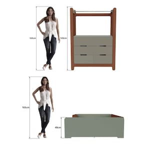 O Guarda-Roupas Closet Infantil Olivia é produzido em 100% MDF BP de 1,5cm, com pés elevados, corrediças telescópicas, cabideiro metálico e puxadores embutidos, garantindo durabilidade e praticidade no dia a dia.