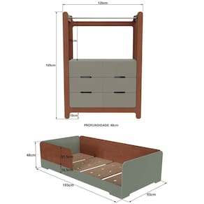 Com design inspirado em móveis planejados e acabamento sofisticado, o conjunto Olivia e Mark transforma o quarto infantil em um espaço seguro, versátil e cheio de estilo. Altura do Conjunto: 165 cm Ambiente Principal: Quarto Infantil codigo_ean: 7900288264596 Complexidade da Montagem: Média: pode ser montado por mais de uma pessoa e/ou necessite de maior conhecimento para montagem Cor: Verti/ Castanho Cor do Produto: Verti/ Castanho Escala de Brilho: Fosco Largura do Conjunto: 193 cm Linha ou Coleção: Olivia / Mark Manual de Montagem e Instalação: https://cdn2.madeiramadeira.com.br/atributo/ferpa-wood/3258925-6578-17594984216437.pdf Marca: FD Material Principal: MDF Medida de Cada Item: Cama: 193cm x 93cm x 48cm, Guarda-Roupa: 165cm x 120cm x 48cm modular: Não Necessita Montagem: Sim O Conjunto Contém: Cama/Guarda-Roupa Origem do Produto: Nacional Peso: Cama: 49kg, Guarda-Roupa: 64kg Pintura Atóxica: Não Possui Portas: Não Recomendações de Uso, Manutenção e Limpeza: Limpar somente com um pano levemente umedecido. Indicado para ambientes internos Sistema de Montagem: Parafusos, cavilhas e minifix Suporta Até (kg): 80