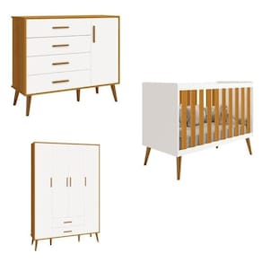 O Conjunto Isis é uma excelente opção pra quem procura por qualidade, beleza e praticidade. Seus pés retro em madeira dão charme e elegância ao produto. O berço possui 3 posições de estrado, acompanha suporte para mosquiteiro e ainda se transforma em uma linda mini cama. A comoda possui 4 gavetas espaçosas, uma sapateira com prateleira, corrediças telescópicas e puxadores em madeira. O roupeiro possui gavetas espaçosas, portas, cabideiro, prateleiras, corrediças telescópicas e puxadores em madeira. Ambiente Principal: Quarto de Bebê codigo_ean: 7909903960868 Cor: Branco/Savana Cor do Produto: Branco/Savana Estrado com Regulagem de Altura: Sim Informação Complementar: 1x Berço Mini Cama Americano Isis Linha Isis Branco/Savana Largura: 133 Altura: 94 Peso: 34 Profundidade: 77 Necessita Montagem: Sim