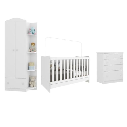 Acabamento: Pintura UV | Cor: Branco | Material: MDF/MDP | Referência do Modelo: FG3032 | Coleção: João e Maria Plus | Instruções de Cuidado: Limpar com pano seco para retirar o pó. Não utilizar produtos químicos ou abrasivos. Não aplicar lustra móveis. | Altura Montado: | Sistema de Montagem: O produto acompanha manual de montagem juntamente com kit ferragem. | Corrediça: Metálica | Produto Composto por: 1 guarda roupas, 1 cômoda, 1 berço, 1 colchão, manual de montagem e kit ferragem. | Inclui Berço: Sim | Tamanho (L x A x P): 200 x 192 x 135 | Acompanha Colchão: Sim | Peso do Produto: | Inclui Guarda-Roupa: Sim | Material do Puxador: ABS | Inclui Gaveteiro: Sim | Largura Montado: | Profundidade Montado: | Quantidade de Portas: | Quantidade de Gavetas: | RBN: 17352335011 | Quantidade de Puxadores: | Quantidade de Pés: | Quantidade de Peças: 3 | Material dos Pés: N/A | Tonalidade: Branco | Produto: Conjunto de Quarto | Fabricante: Multimóveis | Portátil: Não | Requer Montagem: Sim | Registro INMETRO: 007249/2020 | Estado de Origem: RS | Regulamentado pelo INMETRO: Sim | Garantia do Fabricante: 3 | Produto precisa de Montagem?: Sim, sugerimos a contratação do nosso serviço de montagem (para os CEPs em que o serviço está disponível) ou de algum experiente de sua preferência | Altura do Produto com Embalagem: | Largura do Produto com Embalagem: | Comprimento do Produto com Embalagem: | Peso do Produto com Embalagem: | Nome do Produto no Fornecedor: Quarto Infantil Completo Berço 4x1 c/ Colchão/Guarda-Roupa/Cômoda Multimóveis João e Maria FG3032 Bc | Tempo de Garantia: 3 meses | Descrição do Tamanho: L x A x P: 200 x 192 x 135 cm | Tipo de cama: Clássica | Tamanho da cama: Berço | Quantidade de mudos: 0 | Tipo de madeira: N/A | Destaque 1: Produzido em MDF/MDP: maior durabilidade e resistência. | Destaque 2: Guarda-roupas com 2 portas e 1 gaveta com corrediças metálicas. | Destaque 3: Cômoda com 4 gavetas conta com sistema antitombamento. | Destaque 4: Guarda-roupas e cômoda acompanham detalhes em 4 cores (Branco, Rosa, Azul e Cinza), e você escolhe qual combina mais com sua decoração na hora da montagem. | Comprimento da cama: 68 cm | Destaque 5: Berço 4 em 1 com 3 regulagens de altura para o colchão. | Altura da cama: 91 cm | É Kit de fábrica: Sim | Estilo: Moderno | Marca: Multimóveis | Largura da cama: 133 cm