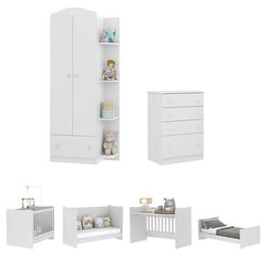 O Quarto Infantil Completo com Berço 4x1 João e Maria Multimóveis é o sonho de todo pai e mãe que desejam um ambiente , confortável e funcional para seus pequenos. Com acabamento em pintura UV e Laca PU, esse conjunto é produzido em MDP, garantindo qualidade e durabilidade. O roupeiro com 2 portas e 1 gaveta com corrediças metálicas oferece espaço suficiente para acomodar todas as roupas do bebê, enquanto a cômoda com 4 gavetas conta com sistema antitombamento para maior segurança. Além disso, tanto o roupeiro quanto a cômoda acompanham detalhes em 4 cores (Branco, Rosa, Azul e Cinza), permitindo que você escolha qual combina mais com sua decoração na hora da montagem. O Berço 4 em 1 é produzido em MDP/MDF e possui grade Soft (PVC) ecologicamente correta, elaborada com matéria-prima livre de metais pesados, atóxica e com proteção anti-amarelamento. O lastro possui 3 regulagens de altura para o colchão e se adapta às diferentes fases da criança. Ainda acompanha suporte para mosquiteiro, proporcionando maior conforto e proteção. Além disso, este berço é certificado pelo INMETRO seguindo rigorosos padrões de segurança. Sua versatilidade é um dos grandes diferenciais: ele pode ser transformado facilmente em sofá, minicama e até mesmo uma prática escrivaninha acompanhando as necessidades do ambiente e da criança. Padrão (tamanho do colchão 130 x 60cm), o berço acompanha um colchão densidade D18 que possui tratamento anti-ácaro e anti-alérgico - perfeito para proteger a saúde dos pequenos. Suporta até 50kg e é certificado pelo INMETRO sob o Selo n 007249/2020.