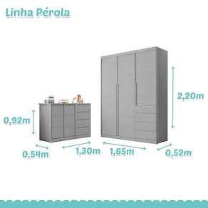 O conjunto Pérola, da fábrica Phoenix Baby, foi criado para oferecer a solução completa de organização para o quarto infantil, unindo funcionalidade e delicadeza. Composto por um guarda-roupa e uma cômoda, ambos 100% em MDF, o conjunto proporciona resistência e durabilidade, ideal para o ambiente dos pequenos.