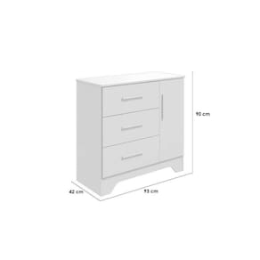 Dimensões(Cm): Comprimento(Profundidade): 42cm x Largura: 92,9cm x Altura: 89,4cm Material de Estrutura - MDF Tipo de Pintura - Ultravioleta Tipo de Acabamento da Pintura - Semi Brilho - Atóxica Tipo de Dobradiças - Dobradiças Metálicas Quantidade de Portas - 1 Porta de Abrir Tipo de Corrediça - c/ Corrediças Telescópicas Quantidade de Gavetas - 3 Quantidade de Prateleiras - 2 Certificação de Qualidade - Qualidade Aprovada Garantia - Garantia de 90 Dias