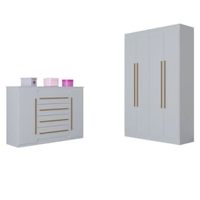 Características Guarda Roupa: Fabricado em MDP 4 Portas Dobradiças Metálicas 2 Gavetas Corrediças Telescópicas Puxadores de MDF Cabideiro Acabamento em Pintura U.V