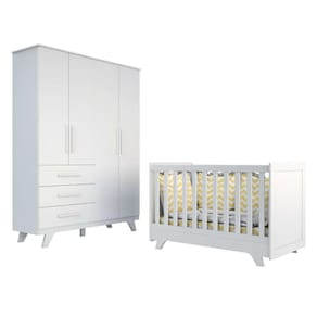 Características: Registro Inmetro do berço: 000781/2018 Estrutura em MDF Vira Mini Cama Tamanho do Colchão Indicado -L x C-: 70 cm x 130 cm -Não acompanha colchão- Guarda-roupa Material: MDF Portas: 4 Cabideiro: metálico Puxadores: MDF revestidos Corrediças: telescópicas
