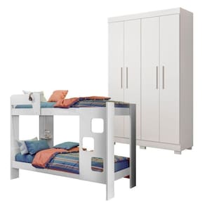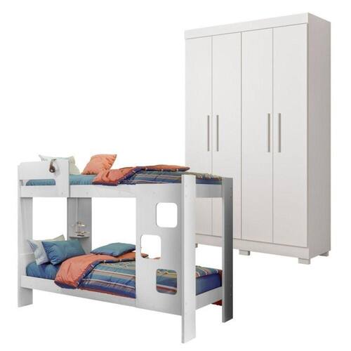 Possui Rodízio: Sim Altura do Conjunto: 220 cm Ambiente: null Ambiente Principal: Quarto Cor: Branco Informação Complementar: 1x Beliche 100% MDF com Prateleira Vegas Branco Largura: 197,5 cm Altura: 148 cm Peso: 60,5 kg Profundidade: 98 Necessita Montagem: Sim