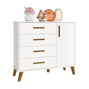 Cômoda Retrô Ayla - Reller Móveis Produto 100% MDF Cabideiro metálico Corrediças telescópicas Puxadores em pinus Pés em madeira pinus Sistema anti tombamento