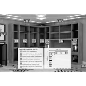 - Modulado de Quarto Closet de Canto Oblíquo Rizon/Linea c/ 1 Porta Cumaru - Novo Horizonte - 1 unidades