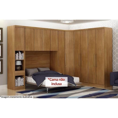 Quarto Modulado Casal Bari 5 Peças 1 Armário Ponte + 1 Closet + 2 Guarda Roupas + 1 Complemento Qcm03 Cumaru - Novo Horizonte