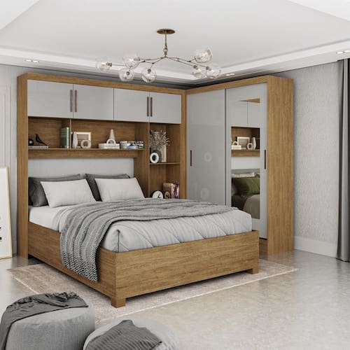 O Quarto Modulado Casal 6 Portas com Espelho e Cama Bel?m Carioca M?veis ? a solu??o perfeita para quem deseja otimizar o espa?o com eleg?ncia e funcionalidade. Com design moderno, o guarda-roupa oferece amplo armazenamento, contando com 6 portas, 4 gavetas com corredi?as met?licas. A cama de casal, com 1,93m de comprimento e 1,44m de largura, proporciona conforto e sofistica??o, sendo ideal para colch?es de 1,38m. Seu estrado de madeira reflorestada e p?s de PVC asseguram resist?ncia e longa vida ?til. Colch?o n?o incluso.