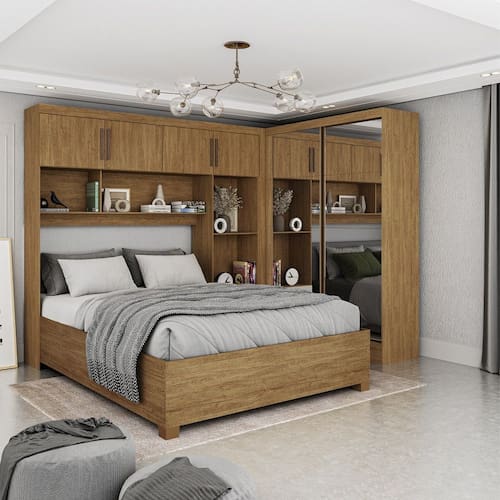O Quarto Modulado Casal 6 Portas com Espelho e Cama Bel?m Premium Carioca M?veis ? a solu??o perfeita para quem deseja otimizar o espa?o com eleg?ncia e funcionalidade. Com design moderno, o guarda-roupa oferece amplo armazenamento, contando com 6 portas, 4 gavetas com corredi?as met?licas. A cama de casal, com 1,93m de comprimento e 1,44m de largura, proporciona conforto e sofistica??o, sendo ideal para colch?es de 1,38m. Seu estrado de madeira reflorestada e p?s de PVC asseguram resist?ncia e longa vida ?til. Colch?o n?o incluso.
