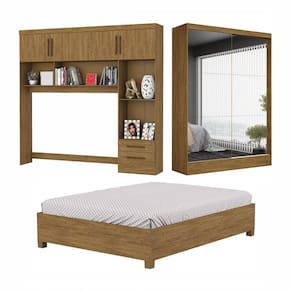 Caracter?sticas: Estrutura em MDP Acabamento Pintura UV 6 Portas sendo 2 de correr Espelho em 2 portas 4 Gavetas Corredi?as met?licas 2 Nichos externos 4 Prateleiras Estrado de madeira P?s da cama em PVC Ideal para colch?o de 138cm N?o acompanha colch?o