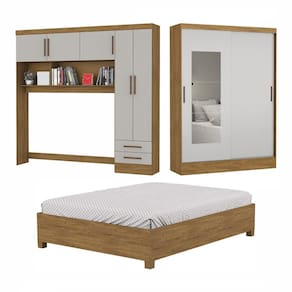Caracter?sticas: Estrutura em MDP Acabamento Pintura UV 7 Portas sendo 2 de correr Espelho em 1 porta 4 Gavetas Corredi?as met?licas 2 Nichos externos 4 Prateleiras Estrado de madeira P?s da cama em PVC Ideal para colch?o de 138cm N?o acompanha colch?o