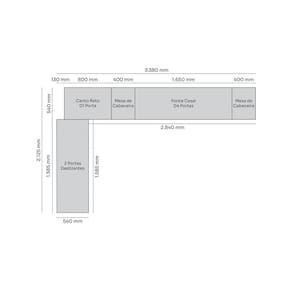 O Quarto Modulado Casal 5 Peças, 9 Portas e 9 Gavetas Seletto possui acabamento com pintura UV, que garante textura impecável. Composto por módulos inidividuais: 1 Guarda roupa de 2 portas de correr com fechamentos deslizante e suave e 3 gavetas com cabideiros e calceiros em alumínio e prateleiras proporcionando uma ótima divisão interna. 2 Mesa de cabeceira com 3 gavetas externas, 1 porta e nicho. 1 Ponte com 4 Portas, ideal para organizar objetos. 1 Canto Reto com calceiro e prateleiras, otimizando o espaço do ambiente. Com 240,5 cm de altura e 54 cm de profundidade, o Quarto Seletto combina robustez, design imponente e funcionalidade, com dobradiças Soft Close, corrediças telescópicas e estilo moderno, criando um ambiente organizado e prático. Acabamento da Gaveta: Pintura Texturizada UV Acabamento da Porta: Pintura Texturizada UV Acabamento da Prateleira: Pintura Texturizada UV Altura do Espelho: cm Ambiente Principal: Quarto codigo_ean: 7900288188380 Complexidade da Montagem: Alta: deve ser montado por um montador especializado Composição: 90% MDP e 10% MDF Cor: Areia /Jequitibá Cor do Produto: Areia /Jequitibá Cor Interna: Cinza Escala de Brilho: Fosco Espessura do Espelho: mm Espessura do Material da Estrutura: 15 mm Gaveta com Chave: Não Informações Complementares: Gavetas com corrediças telescópicas • Puxadores, cabideiros e calceiros em alumínio Itens Inclusos: 1 Quarto Modulado, Kit Ferragem e Manual de Montagem Largura do Espelho: cm Linha ou Coleção: Seletto Manual de Montagem e Instalação: https://product-hub-prd.madeiramadeira.com.br/980931/documents/feba0d66-a024-4853-98c3-16d794a87efe274200630751741866371303.pdf Marca: Henn Material da Gaveta: MDP Material da Porta: MDP Material da Prateleira: MDP Material do Puxador da Gaveta: Alumínio Material do Puxador da Porta: Alumínio Material Principal: MDP Módulo Individual: Não Necessita Montagem: Sim Origem do Produto: Nacional Peso: 370 kg Peso Máximo por Gaveta: 3 kg Peso Máximo por Prateleira: 8 kg Possui Cabideiros: 01 Possui Calceiros: 02 Possui Espelho: Não Possui Possui Pés: Não Possui Portas: 09 Possui Prateleiras: 11 Recomendações de Uso, Manutenção e Limpeza: Para limpeza de seu móvel, use uma flanela limpa e seca. Não utilize produtos químicos que possam danificar o produto. Sistema de Montagem: Parafusos e Cavilhas Suporta Até (kg): 100 kg Tipo de Corrediça da Gaveta: Metálica Telescópica Tipo de Dobradiça/Corrediça da Porta: Metálica Tipo de Puxador da Gaveta: Externo Tipo de Puxador da Porta: Externo