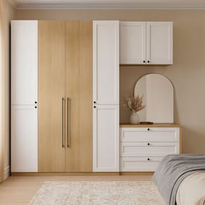 Composta por 5 peças, a linha proporciona um amplo espaço de armazenamento, garantindo organização para roupas, calçados, acessórios e objetos pessoais. Seu design inteligente otimiza o espaço, tornando o ambiente mais funcional e harmonioso.