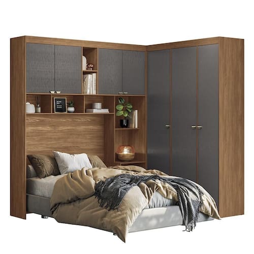 O Quarto Casal Lugano é uma solução completa para quartos de casal, especialmente projetado para espaços menores, visando otimizar o aproveitamento de parede e oferecer excelente custo-benefício. O modulado inclui um roupeiro de três portas com puxadores pontuais, cabideiros de alumínio para maximizar o espaço e a qualidade do armazenamento de roupas, além de duas gavetas internas espaçosas com corrediças telescópicas de alta qualidade. O módulo acima da cama proporciona espaço para travesseiros, cobertores e roupas de cama, com quatro portas amplas e nichos para exibir decorações. Com uma área de 138 cm para colchão, as prateleiras oferecem espaço adicional para itens como celular, livros, óculos e decorações. Há também duas gavetas menores para guardar pequenos objetos e roupas íntimas. Cada detalhe foi cuidadosamente pensado para garantir funcionalidade e praticidade no dia a dia, atendendo às necessidades de armazenamento de um quarto. O acabamento do móvel é feito com tecnologia Reverse, com uma pintura semi fosca texturizada, seguindo padrões ambientais para promover a sustentabilidade.