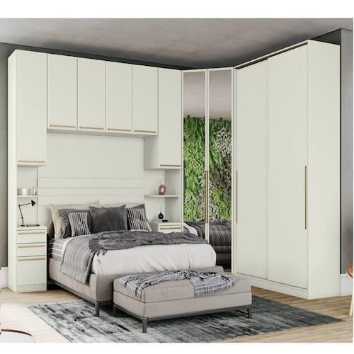 A linha Seletto foi desenvolvida para possibilitar várias opções de montagens e atender diversas necessidades de espaço, oferecendo mais praticidade no seu dia a dia, é compacto e bem planejado, perfeito para a organização, deixando o ambiente ainda mais aconchegante e sofisticado. Acabamento da Gaveta: Pintura Texturizada UV Acabamento da Porta: Pintura Texturizada UV Acabamento da Prateleira: Pintura Texturizada UV Acabamento dos Pés: Pintura Altura dos Pés: 15 Ambiente Principal: Quarto Complexidade da Montagem: Alta: deve ser montado por um montador especializado Composição: MDP Cor: Areia HP Cor do Produto: Areia HP Cor Flex: Não possui Cor Interna: Bege Escala de Brilho: Fosco Espessura do Espelho: 2 Espessura do Material da Estrutura: mm Formato do Espelho: Retangular Gaveta com Chave: Não Informações Complementares: Dobradiças de 35 mm com amortecimento. Itens Inclusos: 1 Roupeiro, 2 Mesa de Cabeceira, Kit Ferragens e Manual de Montagem Linha ou Coleção: Seletto Manual de Montagem e Instalação: https://cdn2.madeiramadeira.com.br/atributo/henn-briz-quarto-adulto/1099618-me06-quarto-modulado-casal-5-pecas-seletto.pdf Material da Gaveta: MDP Material da Porta: MDF Material da Prateleira: MDP Material dos Pés: MDP Material Principal: MDF/MDP Montagem Flex: Não Necessita Montagem: Sim O Módulo Pode ser utilizado individualmente: Sim Origem do Produto: Nacional Pés Reguláveis: Não Peso: 421 Peso Máximo por Gaveta: 3 Peso Máximo por Prateleira: 8 Possui Espelho: Sim Possui Pés: Rodapé Possui Portas: 10 Possui Prateleiras: 12 Possui Rodízio: Não Recomendações de Uso, Manutenção e Limpeza: Para limpeza de seu móvel, use uma flanela seca ou umedecida. Não utilize produtos químicos que possam danificar o produto. Sapatas Niveladoras: Não Sistema de Montagem: Parafusos e cavilhas Tamanho do Espelho (A x L): 232 x 39,1 Tipo de Corrediça da Gaveta: Metálica Telescópica Tipo de Dobradiça/Corrediça da Porta: Metálica Tipo de Fixação do Espelho: Molduras Tipo de Guarda-Roupa: Casal Tipo de Módulo: Guarda-Roupa Tipo de Puxador da Gaveta: Externo Tipo de Puxador da Porta: Externo