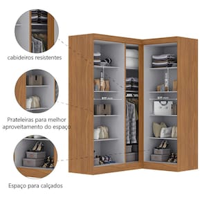 Transforme seu ambiente com o Quarto Modulado de Canto, que oferece versatilidade e organização para o seu espaço. Com design inteligente em formato de canto, ele aproveita ao máximo cada centímetro do ambiente, oferecendo uma solução funcional e versátil. Seu interior é bem distribuído com cabideiros resistentes para manter as roupas organizadas e sem amassar, prateleiras amplas para acomodar roupas dobradas, acessórios ou caixas, além de um espaço dedicado para calçados. As cinco portas garantem fácil acesso e excelente visualização dos itens armazenados. Ideal para quem busca organização, funcionalidade e aproveitamento inteligente do espaço.