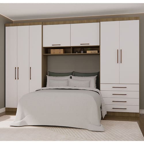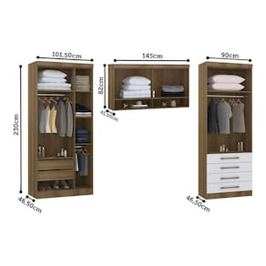 Ambiente composto por: - 1 Guarda Roupa Modulado 101,50cm 3 Portas 230 x 101,50 x 46,50 -Alt x Larg x Prof - cm- - 1 Guarda Roupa Modulado 90cm 2 Portas e 4 Gavetas 230 x 90 x 46,50 -Alt x Larg x Prof - cm- - 1 Armario Aereo Maleiro Modulado 145cm 2 Portas 82 x 145 x 41,50 -Alt x Larg x Prof - cm- *IMPORTANTE: Cama, Colchao ou Conjunto Box NAO compoem o ambiente.*