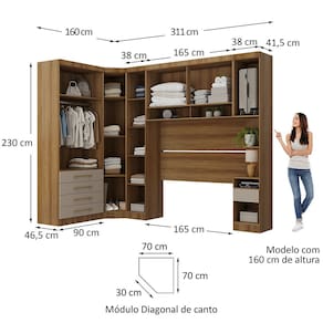 Caracteristicas: Estrutura: 100 MDP Acabamento: Perfect Foil -PF- Quantidade de Portas: 7 Tipo de Abertura das Portas: 5 de Bater e 2 Basculantes Quantidade de Gavetas: 5 Tipo de Corredicas: Telescopica Tipo de Cabideiros: 1 em Aluminio Tipo de Puxador: Plastico PS Tipo de Pes: Rodape Sistema de Montagem: Cavilhas, Parafusos e Minifix Garantia: 3 meses