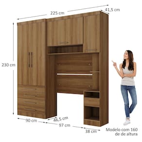 Caracteristicas: Estrutura: 100 MDP Acabamento: Perfect Foil -PF- Quantidade de Portas: 4 Tipo de Abertura das Portas: 3 de Bater e 1 Basculantes Quantidade de Gavetas: 5 Tipo de Corredicas: Telescopica Tipo de Cabideiros: 1 em Aluminio Tipo de Puxador: Plastico PS Tipo de Pes: Rodape Sistema de Montagem: Cavilhas, Parafusos e Minifix Garantia: 3 meses