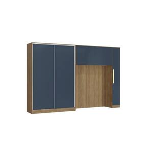 1x Guarda-Roupa 2 Portas de Correr 2 Gavetas Kappesberg Adapt Nogueira/Azul Profundo 158cm;