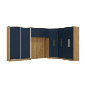 1x Guarda-Roupa de Canto 2 Portas Kappesberg Adapt Nogueira/Azul Profundo 105cm;