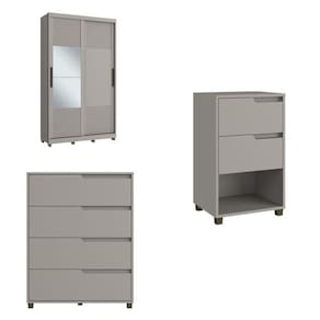 1x Guarda-roupa 2 Portas de Correr com Espelho e 03 Gavetas em 100% Mdf Thales Cinza Largura: 149,6 cm Altura: 235 cm Peso: 131,3 kg Profundidade: 54 cm Necessita Montagem: Sim