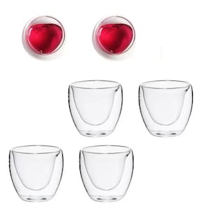 Quatro Copos em vidro borosilicato duplo, cafe cha, 80 ml coracao Quatro copos de vidro com parede dupla. Alem do visual muito bonito, sem mantem mais quentinho. Formato interno coração