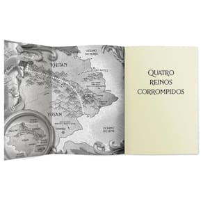 Os melhores traidores de Yusan estão de volta em Quatro reinos corrompidos. Após serem vítimas da própria armadilha, as Cinco Lâminas precisam tomar uma decisão: arriscar tudo ou aceitar a tentadora (e muito suspeita) oferta de trégua? Na sequência de Cinco lâminas partidas, o jogo da traição se tornou uma corrida contra o tempo, e a vingança nunca foi tão perigosa. Que o melhor mentiroso sobreviva. Como vencer o rei de Yusan no próprio jogo? As Cinco Lâminas almejaram alto e falharam de maneira desastrosa. Após verem seus planos falharem — e terem suas mentiras expostas —, o jogo virou. Agora é o rei Joon quem tem o destino de todos nas mãos. E o preço que ele exige para poupar suas vidas é alto: o Anel Dourado do Lorde Dragão. Mas o que já seria complicado se torna ainda pior, pois a relíquia está nas mãos de Quilimar, irmã de Joon e a cruel rainha de Khitan, o reino vizinho que vive uma frágil paz com Yusan. As Lâminas têm um mês para dar um jeito de se aproximar da rainha e roubar o artefato bem debaixo do nariz de um reino inteiro. Para isso, precisarão retomar a confiança que foi quebrada, algo que parece se tornar mais improvável a cada dia que passa. Para as Cinco Lâminas, o maior objetivo é dar o troco em quem as enganou. As mentiras podem tê-las separado, mas a vingança as unirá outra vez. E se a retaliação provocar uma guerra? Bem… ossos do ofício. “Mai Corland apresenta uma fantasia sombria extremamente divertida, recheada com intrigas palacianas, aventura e caos. Uma envolvente história fantástica, com uma seleção de personagens memorável.” – Kirkus Reviews