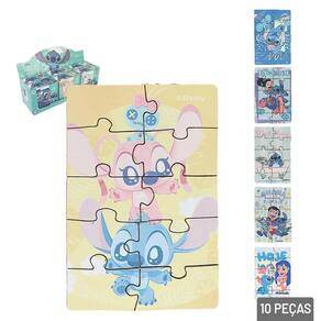 Quebra Cabeça 10 Peças Lilo Stitch O Quebra-Cabeça é uma opção divertida e educativa para crianças que amam a icônica dupla Lilo e Stitch. Com 10 peças coloridas e de fácil manuseio, este quebra-cabeça é perfeito para o desenvolvimento cognitivo e motor de crianças pequenas, ao mesmo tempo em que proporciona uma experiência lúdica e encantadora, baseada no universo do famoso filme da Disney. Cada peça é projetada para ser grande o suficiente para facilitar a manipulação pelas crianças, evitando que sejam engolidas ou dificultem a montagem.\nO quebra-cabeça é decorado com personagens do universo Lilo & Stitch, trazendo imagens vibrantes e detalhadas de Lilo, Stitch e outros personagens do filme. A combinação de cores vivas e a ilustração divertida tornam a experiência de montar o quebra-cabeça ainda mais interessante e envolvente. Fabricado com material de alta qualidade, o quebra-cabeça é resistente e seguro para as crianças, com bordas suaves e sem riscos de machucar as mãos.\nDisponível em cores e modelos .\nProduto pode ser adquirido em um Display com 6 Unidades. Informação Adicional Marca : GALA IBB Tipo de material : Papel Madeira (MDF) Cores ou Estampa : Dimensões do Produto : 4 X 9 X 9 CM Dimensões da Embalagem : 4 X 9 X 9 CM Peso Bruto (Gramas) : 0.004 Quantidade de unid. na caixa : 12 Marca: Não Informado