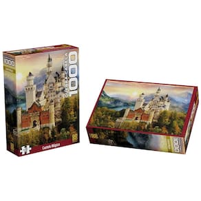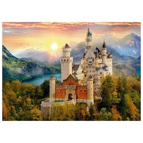 Deixe o sol iluminar o castelo dos seus sonhos, erguido sobre lagos azuis e florestas vibrantes que formam a fortaleza da fantasia. Dos pináculos medievais aos tons quentes, cada peça deste quebra-cabeça reconstrói sua lenda a magia para dentro da casa!