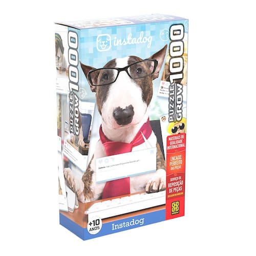 Quebra-Cabeça - 1000 Peças - Instadog - Bull Terrier - Grow: Puzzle Grow de 1000 peças para as crianças encaixarem uma a uma até formar uma incrível imagem. São 1000 peças para encaixar até formar uma divertida figura. Montando este lindo quebra-cabeça, as crianças são estimuladas a um passatempo que aumenta as capacidades de percepção, raciocínio, concentração e memória. Puzzle Grow Instadog é composto por peças produzidas em papel cartão e traz para bem perto de você um dos destinos mais encantadores do mundo. Com qualidade de impressão em alta definição para valorizar cada detalhe dessa linda imagem. As peças são de fácil encaixe para a brincadeira ser completa. Montado tem a dimensão de 50 cm de altura por 70 cm de comprimento • Detalhes e Diferenciais: - Auxilia no desenvolvimento - Produzido em papel cartonado - Peças de fácil encaixe e montagem - Material de qualidade internacional - Pode ser utilizado como objeto de decoração quando emoldurados - Embalagem com informações didáticas sobre o tema do quebra-cabeça • Dicas de como montar: 1) Antes de montar, arranje uma base um pouco maior do que o quebra-cabeça a ser montado. 2) Comece separando o quebra-cabeça pelas peças com laterais sem encaixe para a montagem das bordas. 3) Organize as demais peças por cor, para facilitar a visualização do espaço que cada peça deverá ocupar. 4) Inicie por um dos cantos e continue a compor a figura orientando-se pelas cores e pela ilustração. 5) Sempre monte o quebra-cabeça em um lugar plano e, após terminado, verifique se todas as peças estão encaixadas corretamente. 6) Quando terminar de montar esse lindo quebra-cabeça de cachorrinhos, você pode emoldurar para usar como parte da decoração INFORMAÇÕES: • Produto: Quebra-Cabeça Instadog 1000 peças • Marca: Grow • Coleção: Puzzles Animais • Tipo: Quebra-Cabeça • Categoria: Quebra-Cabeça e Puzzles • Dimensões: 50 x 70 cm (montado) • Conteúdo: 1 puzzle de 1008 peças • Recomendação: para crianças a partir de 10 anos de idade ESPECIFICAÇÕES: • Referência: 03933 • Código de Barras: 7908010139334 • Embalagem (C x A x L): 16 x 27 x 6.8 cm • Embalagem (Peso): 0.570 kg • Material / Composição: papel e papel cartão • Certificado: Órgãos Autorizados - OCP´S (Organismos de Certificação de Produtos) BENEFÍCIOS DE MONTAR QUEBRA-CABEÇA: - Eleva a autoestima - Exercita a memória - Estimula o raciocínio - Exercita o imaginário - Desenvolve a criatividade - Desenvolve percepção visual - Desperta a atenção e curiosidade - Desenvolvimento neuropsicológico - Estimula habilidades motoras básicas - Incentiva a comunicação e linguagem - Desenvolve aspectos emocionais e afetivo - Estimula o reconhecimento de formas e cores AVISO: - As imagens são meramente ilustrativas - Os tamanhos e medidas são aproximados - As cores e estampas dos produtos podem ter variações - As informações são de responsabilidade do fabricante ou fornecedor