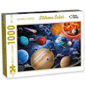 Quebra-Cabeça - 1000 Peças - Sistema Solar - Pais e Filhos: Com o quebra-cabeça Sistema Solar, você desfrutará de longas horas de entretenimento garantido. Além disso, você exercitará seu cérebro aumentando sua concentração e desenvolvendo sua criatividade. Aceite o desafio de montá-lo no menor tempo possível, sozinho ou trabalhando em equipe com amigos ou familiares. O Quebra-Cabeça Sistema Solar é composto por peças produzidas em papel cartão. Fabricado com qualidade de impressão em alta definição para valorizar cada detalhe. As peças são de fácil. Montado tem a dimensão de 54 cm de altura por 74 cm de comprimento. Dicas para montagem: 1 - Confira o número de peças com a informação existente na embalagem 2 - Providencie uma base (papelão ou madeira) um pouco maior que a imagem a ser montada. As dimensões da imagem podem variar em até 1% 3 - Separe as peças com cantos retos e monte, sobre a base, toda a borda da imagem a ser montada 4 - Separe as demais peças, agrupando-as pelas cores, para facilitar a sua localização 5 - Quando chegar a uma área com muitas peças da mesma cor, separe-as pelo formato 6 - Mantenha o quebra cabeça em lugar plano, enquanto estiver fazendo a montagem 7 - Depois de montar, certifique-se de que todas as peças estão bem encaixadas, e nos lugares corretos Informações: • Produto: Quebra-Cabeça Sistema Solar 1000 peças • Marca: Pais e Filhos • Coleção: Sistema Solar • Tipo: Quebra-Cabeça • Categoria: Quebra-Cabeça e Puzzles • Dimensões: 74 x 54 (montado) • Conteúdo: 01 quebra-cabeça • Recomendação: para crianças a partir de 10 anos de idade Especificações: • Referência: 7918251 • Código de Barras: 7908470018255 • Embalagem (C x A x L): 20 x 26,5 x 5,5 cm • Embalagem (Peso): 0,534 Kg • Material / Composição: papel-cartão • Registro: Não possui por se tratar de um quebra-cabeça com mais de 500 peças • Certificado: Órgãos Autorizados - OCP´S (Organismos de Certificação de Produtos) Benefícios de montar quebra-cabeça: • Eleva a autoestima • Exercita a memória • Estimula o raciocínio • Exercita o imaginário • Desenvolve a criatividade • Desenvolve percepção visual • Desperta a atenção e curiosidade • Desenvolvimento neuropsicológico • Estimula habilidades motoras básicas • Incentiva a comunicação e linguagem • Desenvolve aspectos emocionais e afetivo • Estimula o reconhecimento de formas e cores Aviso: • As imagens são meramente ilustrativas • Os pesos, tamanhos e medidas são aproximados • As cores e estampas dos produtos podem ter variações • As informações são de responsabilidade do fabricante ou fornecedor