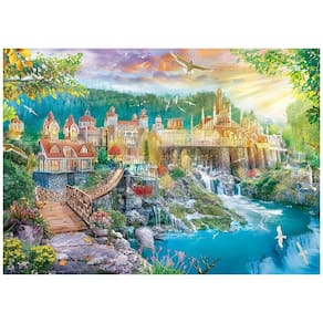 Um lugar mágico, onde pontes de madeira, castelos encantados e cachoeiras cristalinas criam um cenário de conto de fadas. Ideal para quem sonha com um refúgio de pura fantasia e beleza.A partir de 10 anosQuantidade de peças: 1008Dimensões aproximadas: 50 x 70 cmDicas para montagem:1. Confira o número de peças com a informação existente na embalagem.2. Providencie uma base papelão ou madeira um pouco maior que a imagem a ser montada. As dimensões da imagem podem variar em até 1%.3. Separe as peças com cantos retos e monte, sobre a base, toda a borda da imagem a ser montada.4. Separe as demais peças, agrupando-as pelas cores, para facilitar a sua localização.5. Quando chegar a uma área com muitas peças da mesma cor, separe-as pelo formato. 6. Mantenha o quebra cabeça em lugar plano, enquanto estiver fazendo a montagem.7. Depois de montar, certifique-se de que todas as peças estão bem encaixadas, e nos lugares corretos.