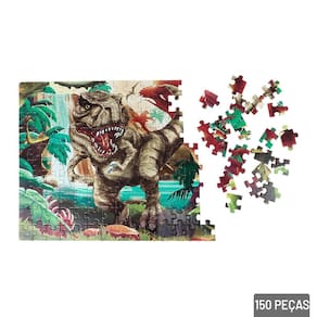 Quebra Cabeça 150 Peças Dinossauro T-rex Prepare-se para uma aventura jurássica com o incrível Quebra-Cabeça. Com uma ilustração vibrante e cheia de detalhes, esse quebra-cabeça é perfeito para crianças que adoram o mundo dos dinossauros. A imagem do poderoso Tiranossauro Rex em ação vai conquistar os pequenos paleontólogos e tornar a experiência de montar ainda mais divertida e educativa.\nIndicado para crianças a partir de 6 anos, o quebra-cabeça conta com 150 peças resistentes, com encaixe firme e preciso. É uma excelente forma de estimular o raciocínio lógico, a coordenação motora fina e a concentração, enquanto proporciona momentos de lazer em família. Ideal como presente de aniversário, Natal ou para incentivar atividades longe das Telas. Informação Adicional Marca : GALA Tipo de material : Papel cartão Cores ou Estampa : Verde Dimensões do Produto : 27 X 20 X 6 CM Dimensões da Embalagem : 27 X 20 X 6 CM Peso Bruto (Gramas) : 0.021 Número do certificado INMETRO : 003755/2019 CE-BRI/ICEPEX-N 01264-25 Marca: Não Informado