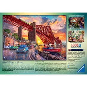 A Forth Bridge é um ícone escocês, e foi a primeira grande estrutura de aço do mundo. Esta vista atmosférica captura a poderosa construção vermelha no início da noite, seus famosos arcos cantilever estendendo-se através do Firth of Forth. Além da ponte em si, nossa cena mostra carros antigos se reunindo para uma "disputa" local, barcos de pesca esperando sua próxima viagem para fora e um motor a vapor alimentando seu caminho através da ponte após um dia de viagem. Esqueça as preocupações do dia e crie alguns momentos conscientes enquanto monta este quebra-cabeça deslumbrante e dramático. Uma ótima ideia de presente ou passatempo para quem ama o cenário dramático e a história da Escócia ou visitou este lugar maravilhoso e quer um lembrete de sua viagem. Nossos quebra-cabeças de 1000 peças são fabricados com qualidade premium e medem 70 x 50cm quando concluídos. Ótimo para adultos e quebra-cabeças ideais para crianças de 12 anos ou mais. Marca de quebra-cabeças mais vendida em todo o mundo - Com mais de 1 bilhão de quebra-cabeças vendidos, nossos quebra-cabeças fazem presentes ideais para mulheres, ótimos presentes para os homens e se encaixam perfeitamente em nosso quadro de quebra-cabeças. Nossos quebra-cabeças usam um papelão exclusivo e extra-grosso combinado com nosso papel fino e estruturado de linho para criar uma imagem de quebra-cabeça sem brilho e lhe dar a melhor experiência possível. Positivamente intrigante - Desde tempos divertidos em família juntos até benefícios de longo prazo para a saúde e momentos conscientes do dia-a-dia, há tantos pontos positivos sobre o humilde Jigsaw! Eles fazem um grande presente de aniversário ou um presente de Natal esmagador