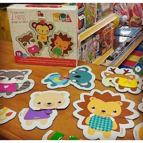Indicação: crianças a partir de 18 meses. Material: cartonado. Conteúdo da Embalagem: 8 quebra-cabeças de 2 partes, de 15 cm cada, grandes e resistentes. Dimensões da Embalagem: 21 x 19 x 4,5 cm.