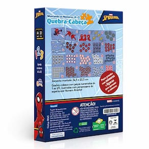Quebra-Cabeça - 20 Peças - Spiderman - Montando os Números - Toyster: divirta-se Montando os Números do 1 ao 20 com o Homem-Aranha! Esse incrível quebra-cabeça educativo de 20 peças com peças ilustradas com personagens das aventuras do Spiderman é perfeito para estimular o aprendizado e a diversão. As peças em papel e papel cartão tem alta qualidade de impressão para valorizar cada detalhe da imagem do quebra-cabeça. Detalhes: • Tamanho: 34.5 x 22.5 cm (montado) • Peças grandes com números e figuras para aprender os números • Quebra-cabeça com peças numeradas do 1 ao 20 • Com personagens ilustrados das Princesas e seus amigos Informações: • Produto: Montando os Números do 1 ao 20 Homem Aranha • Marca: Toyster • Coleção: Marvel Spiderman (Homem-Aranha) • Tipo: Quebra-Cabeça Educativo • Categoria: Quebra-Cabeças e Puzzles Infantis • Dimensões: 34.5 x 22.5 cm (montado) • Conteúdo: 20 peças • Recomendação: para crianças a partir de 04 anos de idade Especificações: • Referência: 8045 • Código de Barras: 7896054080456 • Embalagem (C x A x L): 13.2 x 20.5 x 4.5 cm • Embalagem (Peso): 0.260 kg • Material / Composição: papel e papel cartão • Registro: 000 520/2022 OCP 0006 • Certificado: Órgãos Autorizados - OCP´S (Organismos de Certificação de Produtos) Benefícios de montar quebra-cabeça: • Eleva a autoestima • Exercita a memória • Estimula o raciocínio • Exercita o imaginário • Desenvolve a criatividade • Desenvolve percepção visual • Desperta a atenção e curiosidade • Desenvolvimento neuropsicológico • Estimula habilidades motoras básicas • Incentiva a comunicação e linguagem • Desenvolve aspectos emocionais e afetivo • Estimula o reconhecimento de formas e cores Aviso: • As imagens são meramente ilustrativas • Os pesos, tamanhos e medidas são aproximados • As cores e estampas dos produtos podem ter variações • As informações são de responsabilidade do fabricante ou fornecedor