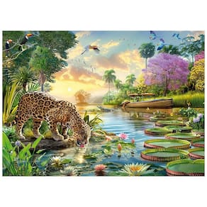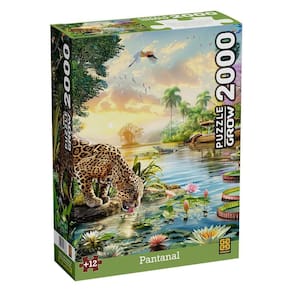 Este lindo quebra-cabeça do Pantanal, mesmo sendo um dos menores biomas existentes do Brasil, também é extremamente rico em sua fauna. E ele é considerado o bioma mais preservado do Brasil.Esta imagem transmite calma, onde apenas conseguimos imaginar o som dos pássaros da correnteza do rio.Monte este paraíso do Pantanal, que em cada peça encaixada sinta a beleza de nosso bioma Dimensões aproximadas 70,4 x 97,8 cmContém 1998 peçasA partir de 12 anos
