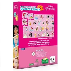 Tamanho montado: 34,5 x 22,5 cm Referência do Modelo: 8042 Certificado Inmetro: OCP 0006 CE-BRI/IQB - 002320 NM 300/2002 Conteúdo da Embalagem: 01 Quebra Cabeça com 26 peças Composição/material: Cartonado Idade recomendada: +04 anos