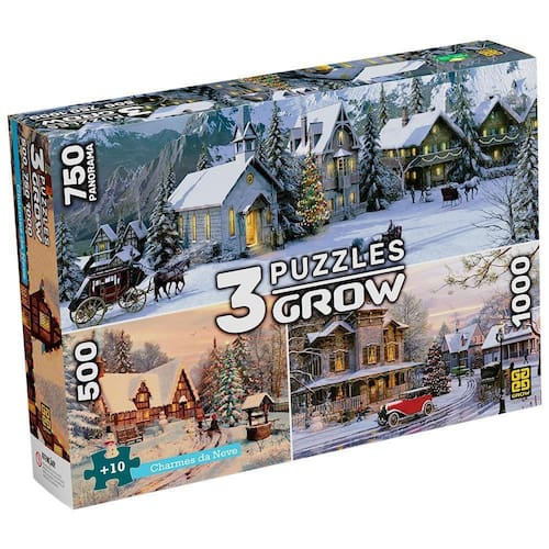 Apesar de bem gélido em algumas regiões do mundo, o inverno traz consigo o charme de uma estação capaz de proporcionar momentos bem agradáveis.Por que se proteger do frio em ambientes fechados, se muito mais divertido andar de trenó, dar vida a um boneco de neve ou mesmo fazer um passeio de charreteEnfeitar a casa com luzes deixa o visual deslumbrante e ilumina charmosamente as noites, que costumam ser mais longas nesta época do ano.A neve é sinônimo de maga e faz com que diversas paisagens se tornem especiais.Ficou com frio Então agasalhe-se e divirta-se montando esses três quebra-cabeças congelantesIdade: A partir de 10 anosContém 3 puzzles com:500 peças - 49,5 x 36,5 cm756 peças - 84 x 30 cm1000 peças - 69,7 x 49,7 cm
