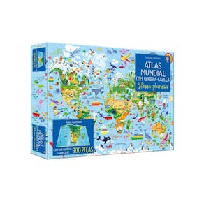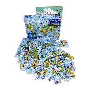 O que você vai encontrar neste produto? Quebra-cabeça com 300 peças de encaixe preciso. Ilustração detalhada de um atlas mundial com mapas, animais, bandeiras e pontos turísticos. Imagem colorida e educativa que instiga a curiosidade das crianças. Caixa resistente com arte inspiradora, ideal para guardar ou presentear.