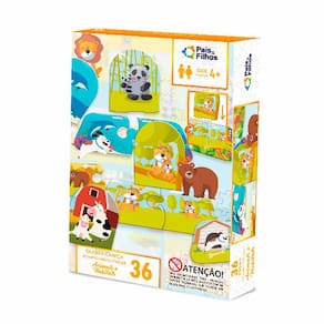 Quebra-Cabeça - 36 Peças - Animais e Habitats - Pais e Filhos: O Quebra-Cabeça Animais e Habitats contém 12 figuras com 3 peças cada para a criança montar peça por peça do quebra-cabeça. Monta, desmonta, remonta quantas vezes quiser. Enquanto isso se diverte e desenvolve a atenção, raciocínio lógico e coordenação motora. Novo quebra-cabeças representa os laços em família em seu habitat .Material didático indicado pelas escolas. São 36 peças em papel cartão, coloridas e resistentes. Puzzle Pais e Filhos Animais e Habitats 36 é composto por peças produzidas em papel cartão com qualidade de impressão em alta definição para valorizar cada detalhe dessa linda imagem. As peças são de fácil encaixe para a brincadeira ser completa. • Dicas de como montar: 1) Antes de montar, arranje uma base um pouco maior do que o quebra-cabeça a ser montado. 2) Comece separando o quebra-cabeça pelas peças com laterais sem encaixe para a montagem das bordas. 3) Organize as demais peças por cor, para facilitar a visualização do espaço que cada peça deverá ocupar. 4) Inicie por um dos cantos e continue a compor a figura orientando-se pelas cores e pela ilustração. 5) Sempre monte o quebra-cabeça em um lugar plano e, após terminado, verifique se todas as peças estão encaixadas corretamente. 6) Quando terminar de montar esse lindo quebra-cabeça de cachorrinhos, você pode emoldurar para usar como parte da decoração Informações: • Produto: Quebra-Cabeça - 36 Peças – Animais e Habitats – Pais e Filhos • Marca: Pais e Filhos • Coleção: Animais e Habitats • Tipo: Quebra-Cabeça • Categoria: Quebra-Cabeça e Puzzles • Dimensões: 17,5 x 26,5 cm (montado) • Conteúdo: 1 puzzle de 36 peças • Recomendação: para crianças a partir de 4 anos de idade Especificações: • Referência: 7924131 • Código de Barras: 7908470024133 • Embalagem (C x A x L): 16,0 x 24,0 x 5,0 cm • Embalagem (Peso): 0,275 kg • Material / Composição: papel e papel cartão • Certificado: Órgãos Autorizados - OCP´S (Organismos de Certificação de Produtos) Aviso: • As imagens são meramente ilustrativas • Os tamanhos e medidas são aproximados • As cores e estampas dos produtos podem ter variações • As informações são de responsabilidade do fabricante ou fornecedor